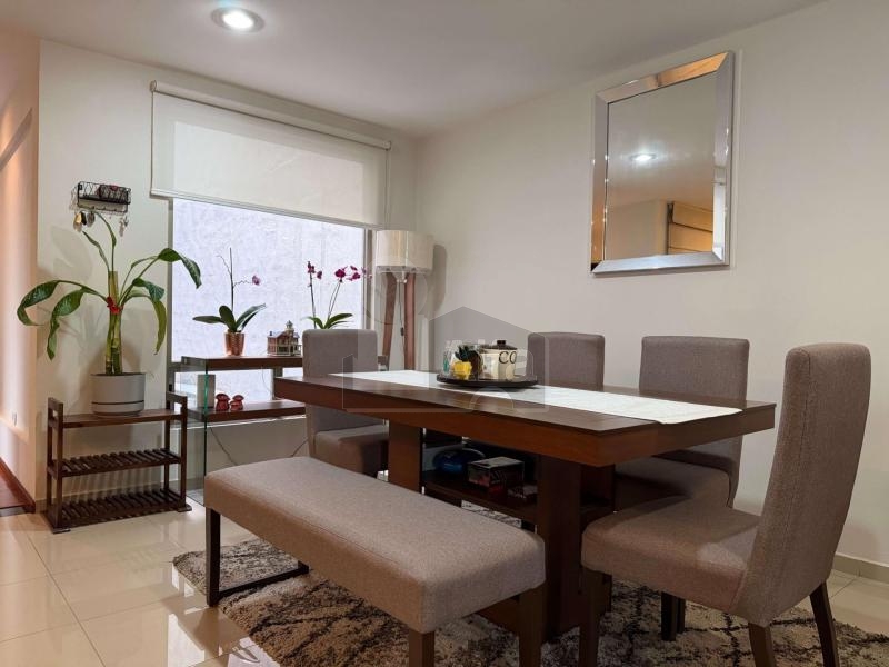Barra desayunador a la que podrá agregar asientos tipo bar y será perfecta para estar cerca en las comidas rápidas, cenas informales o para recibir invitados. Generoso espacio para colocar un comedor para seis u ocho personas, tener cenas de gala o con velas románticas junto a la persona amada.